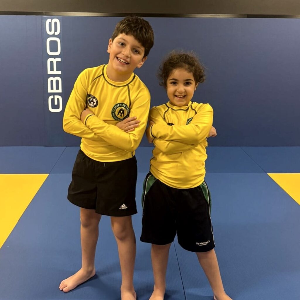 At Grappling Bros, our No-Gi Kids program introduces young students to the exciting world of grappling without the traditional gi. Designed for children aged 7 to 12, this class blends foundational techniques from Brazilian Jiu-Jitsu and wrestling in a playful, safe, and structured environment.